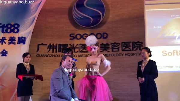 国内某美容院的发布会 台上现场测量美乳小姐姐的漂亮美胸 精致美乳很饱满好像摸一下
