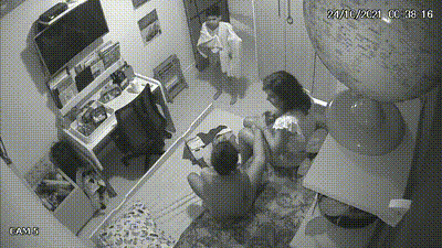 妈妈给儿子换衣服