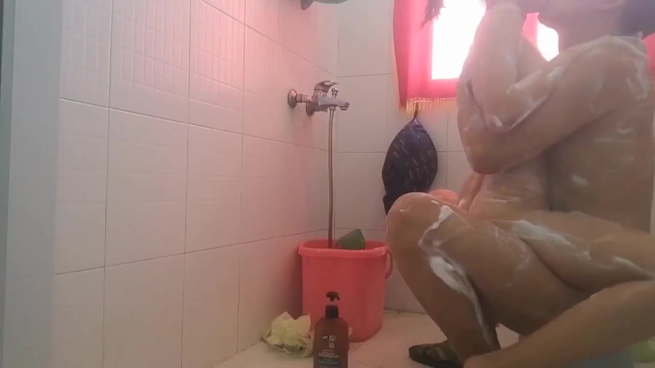 爸爸带着女儿洗澡